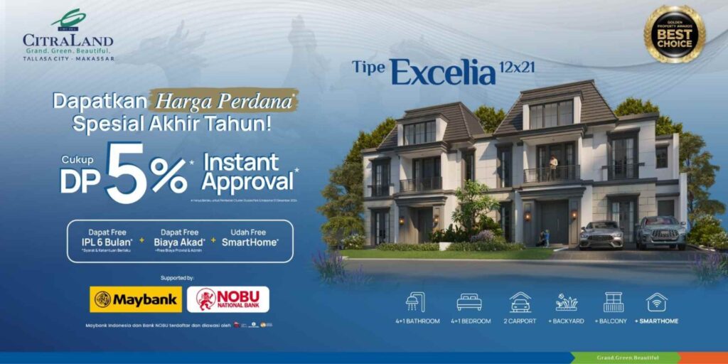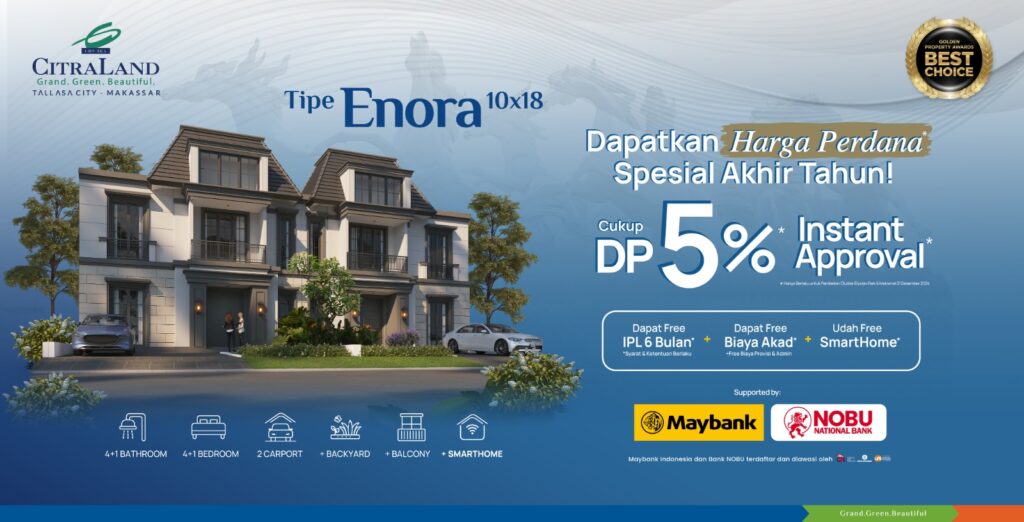 Sedang mencari rumah siap huni di Makassar yang strategis, nyaman, modern, dan bernilai investasi tinggi? CitraLand Tallasa City hadir sebagai jawaban terbaik untuk Anda dan keluarga. Kenalkan, Tipe Aquamarine Lux merupakan hunian eksklusif yang memadukan kemewahan desain modern dengan kenyamanan hidup sehari-hari. Dirancang dengan tata ruang yang fungsional dan estetika yang elegan, rumah ini menjadi […]