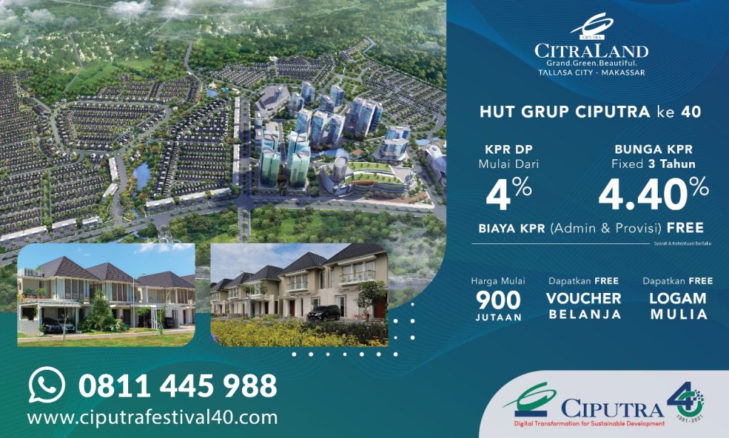 Pada bulan Agustus ini, nikmati penawaran promo spesial kemerdekaan Indonesia dari CitraLand Tallasa City Makassar untuk mewujudkan rumah impian Anda! Cicilan Mulai 5 Juta-an Free Subsidi KPR Provisi & Admin Free AC 1 Unit Free Smart Home * Syarat dan Ketentuan Berlaku Jangan lewatkan kesempatan promo ini! Tekan button ini untuk informasi lebih lanjut ! […]