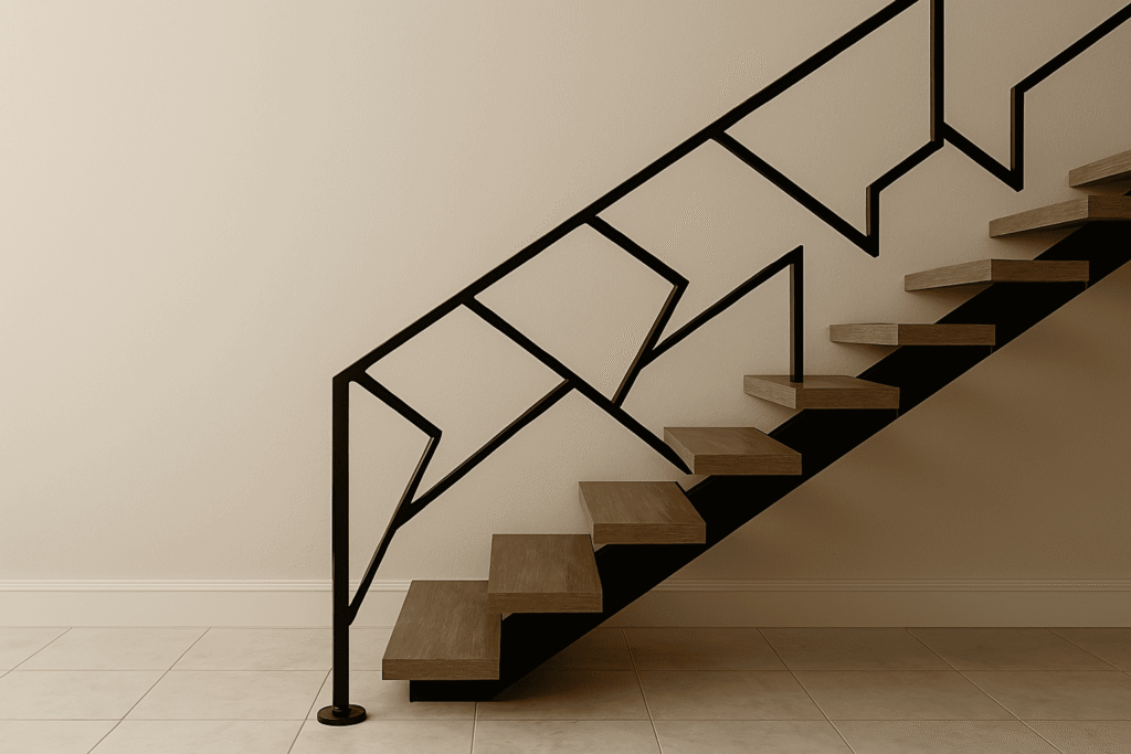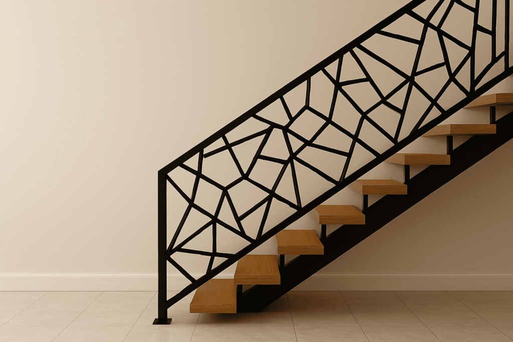 Untuk tampilan yang tegas dan artistik, motif geometris adalah favorit banyak hunian modern. Beberapa orang memilih model ini dikarenakan sangat eye-catching, cocok untuk motif railing tangga yang ingin tampil premium dan berbeda.