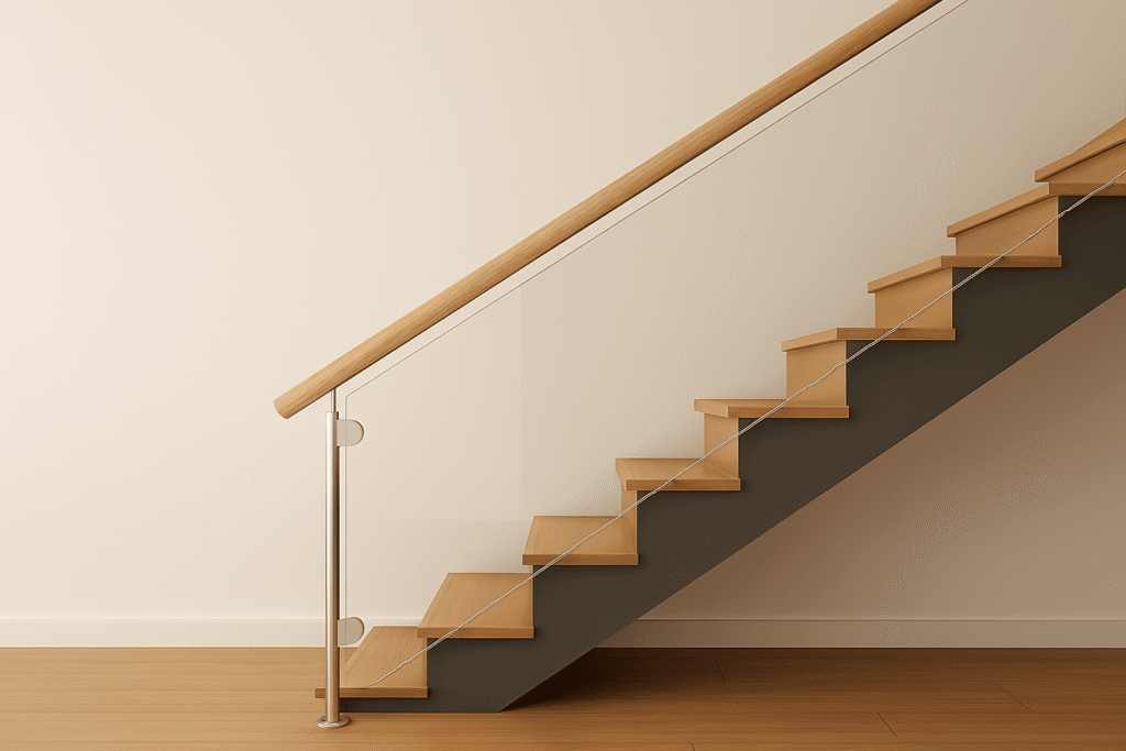 Butuh railing tangga kaca yang tetap modern tapi tidak terlalu transparan? Panel kaca frosted adalah jawabannya. Tekstur buramnya memberikan privasi tambahan tanpa menghilangkan kesan mewah. Efek frosted membuat ruangan tampak lebih soft dan premium. Ini pilihan ideal untuk Anda yang menginginkan railing tangga minimalis mewah namun tidak ingin semua area terlihat jelas dari segala sudut.